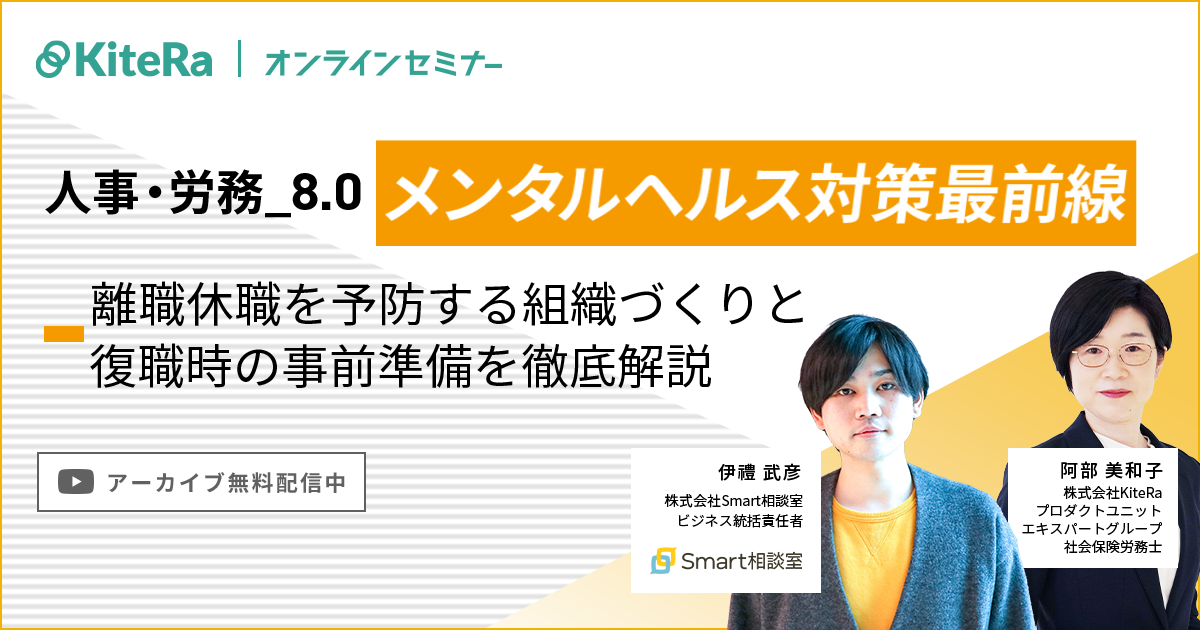 新規採用や人材の定着に苦戦する企業にとって、メンタルヘルス不調による人材喪失や労災トラブルは経営上の大きな問題と言えるでしょう。メンタルヘルス対策としては、メンタルヘルス不調者を出さない予防策と休職者の職場復帰対策の両方が必要です。予防策については、原因のほとんどが人間関係やハラスメント、業務量過多といった職場環境に起因していることから、職場環境の改善が必要であることは明らかです。休職者の職場復帰支援については、休職中のフォロー体制を整備するとともに、職場復帰の支援プログラムを策定するなどが考えられます。